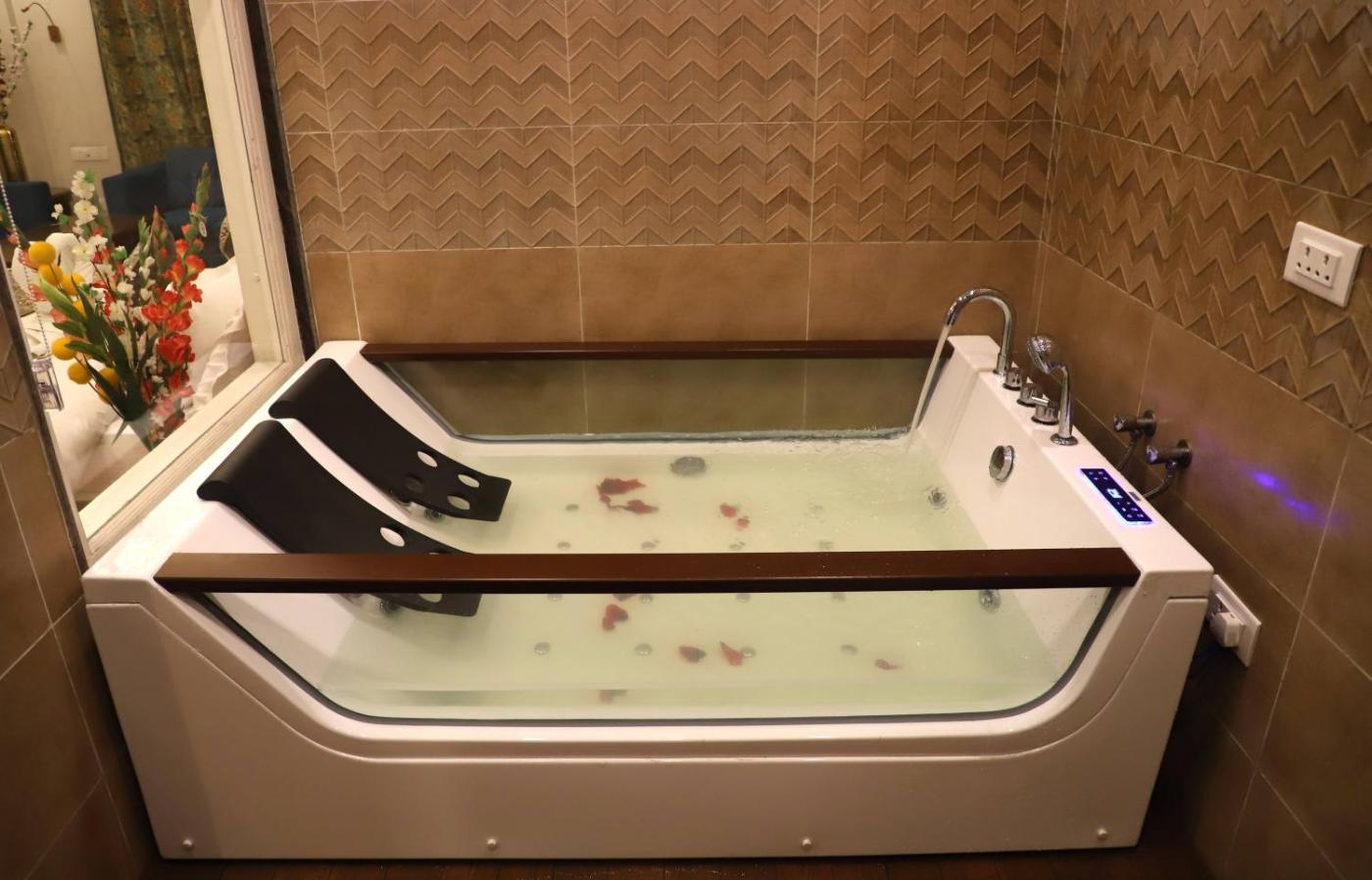 The wellness area at The Hoften Al Shaykh Resorts, Srinagar is comprised of a sauna and a hot tub.
